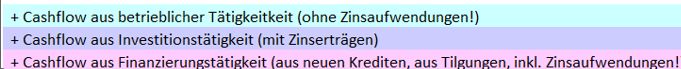 Beim Cashflow 3 bleiben als Restgröße die selbst finanzierten Investitionen – wie besprochen.